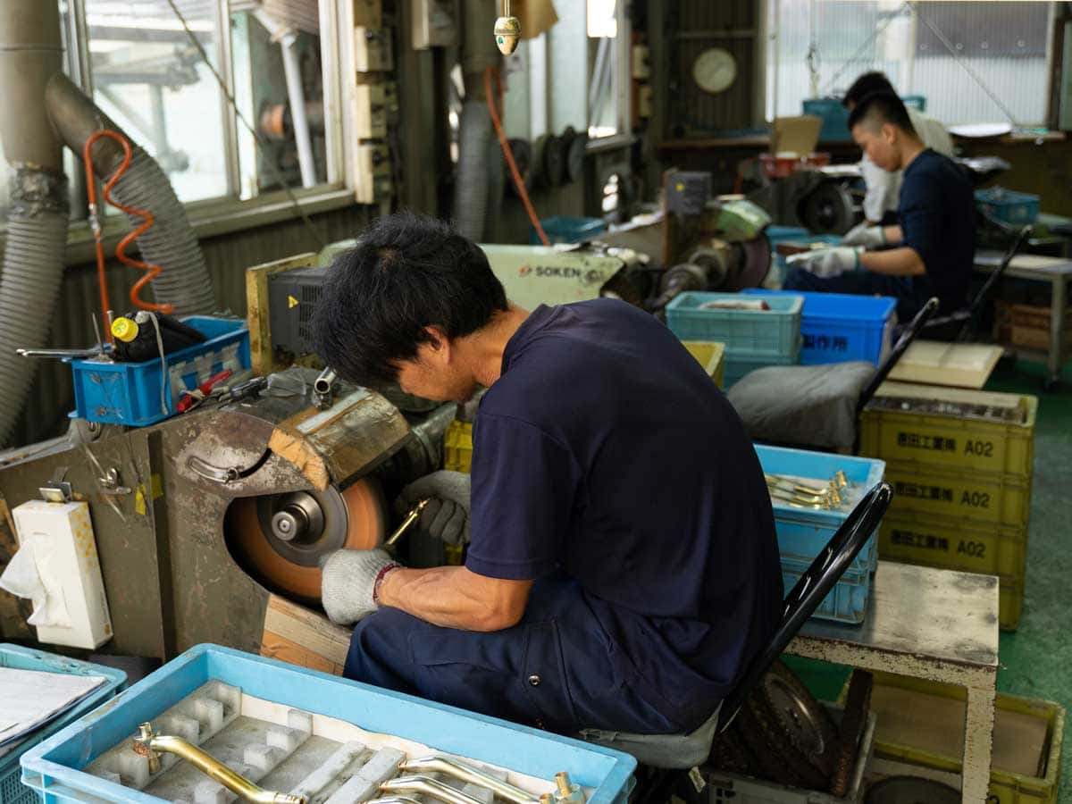 幅広い研磨技術を持った職人が、商品にあわせて一本ずつ丁寧に研磨しています。複雑で難易度の高い商品や素材でも経験と知識で実現いたします。小ロットも対応できます。